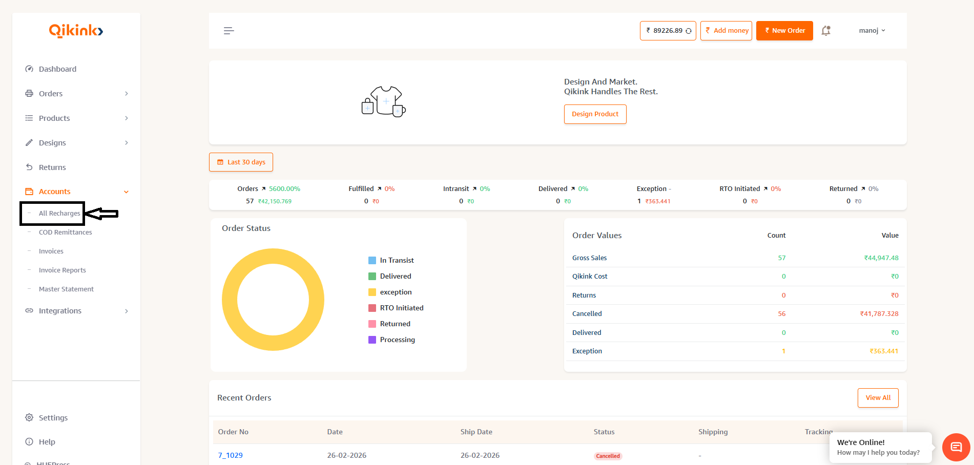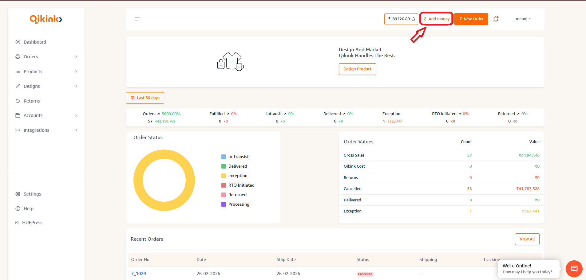 Step 1: Head over to your Qikink Merchant dashboard.