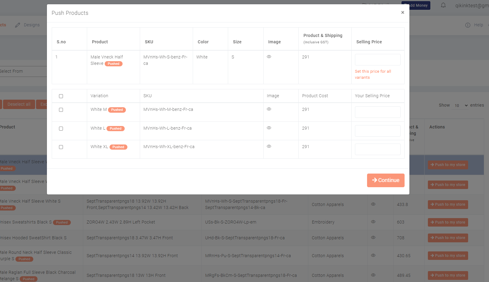 Are you integrated with WooCommerce or Shopify store? Do you have many products to push and face difficulties in remembering which products have been pushed? Now, you can see the "pushed" badge next to your product name if it has been pushed. Click the "push to store" button to check whether all your variants have been "pushed."